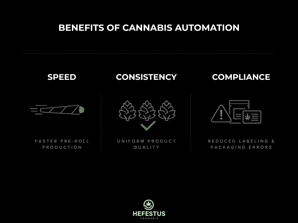 Automated packaging and labeling systems address these challenges by introducing precision, repeatability, and control into the production process—and automated pre-roll production systems have become central to how compliant operations manage this at scale. Rather than relying on manual consistency, automation standardizes execution across every unit produced.